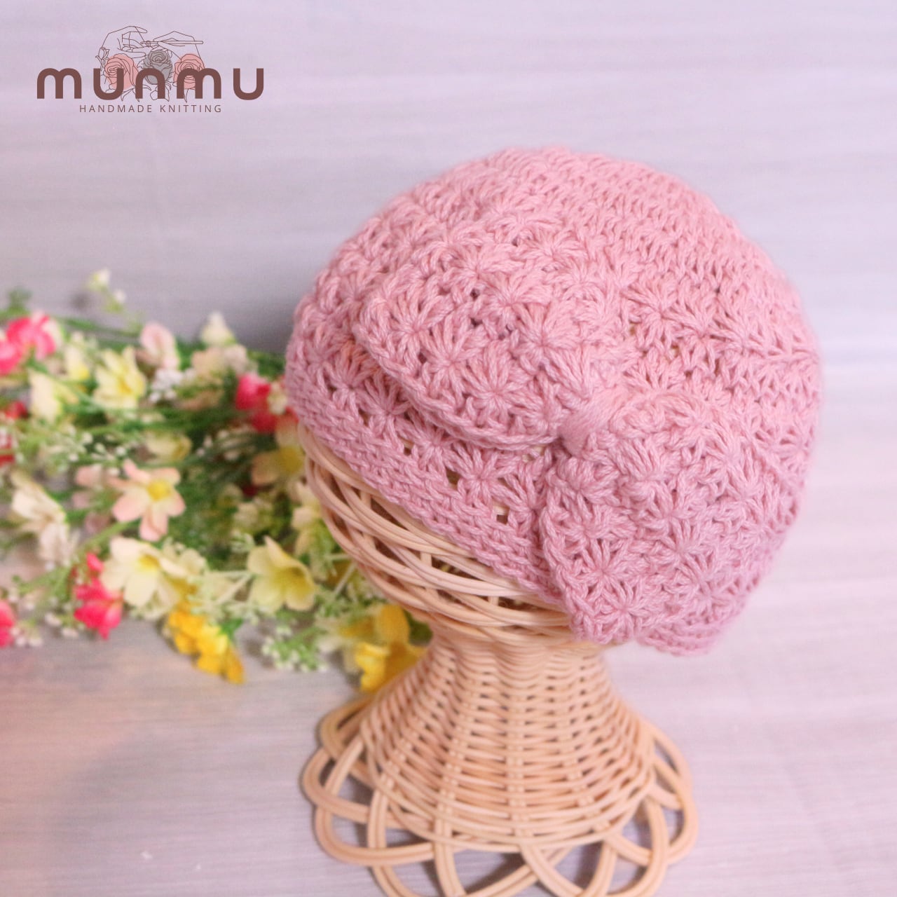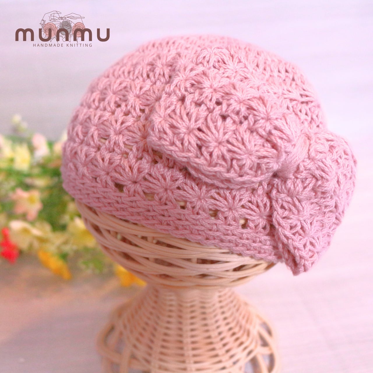 可愛らしい大きめリボンがポイントのニット帽。